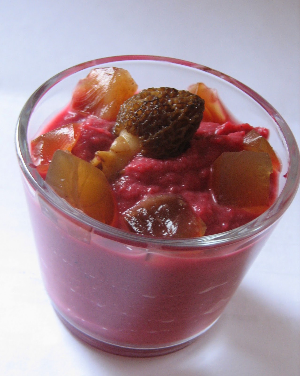 Velouté/crème de betteraves aux châtaignes et aux morilles