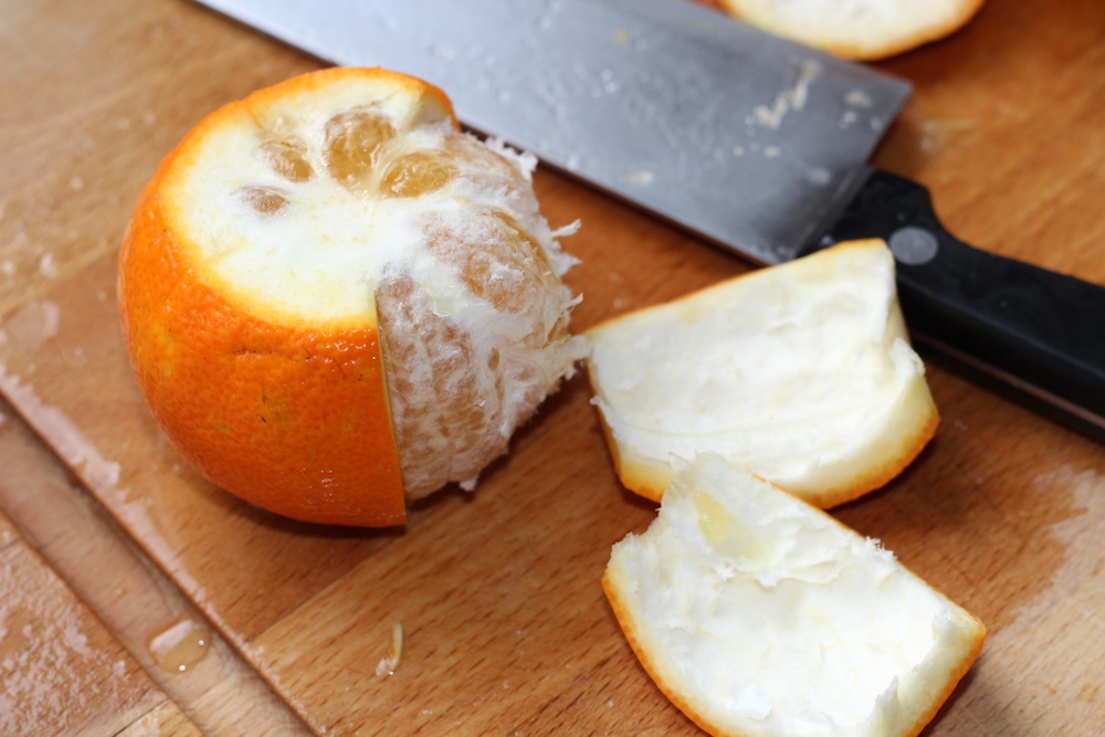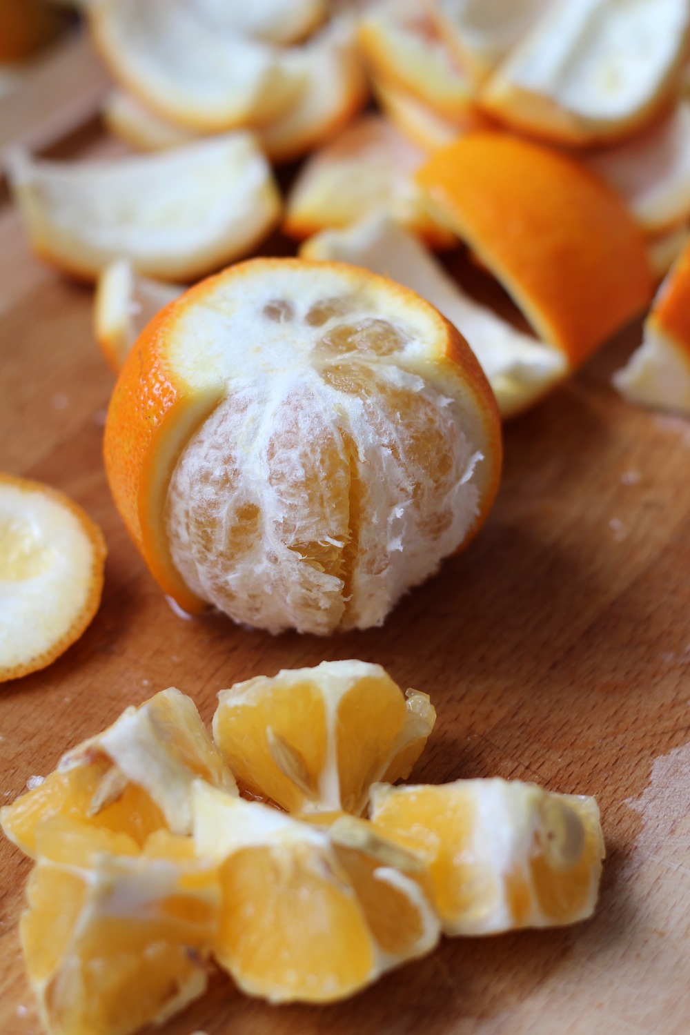 1. Lavez et brossez les oranges sous l’eau chaude. En principe elles ne sont pas traitées mais il vaut mieux éliminer toute saleté, tout résidu indésirable. Séchez-les.