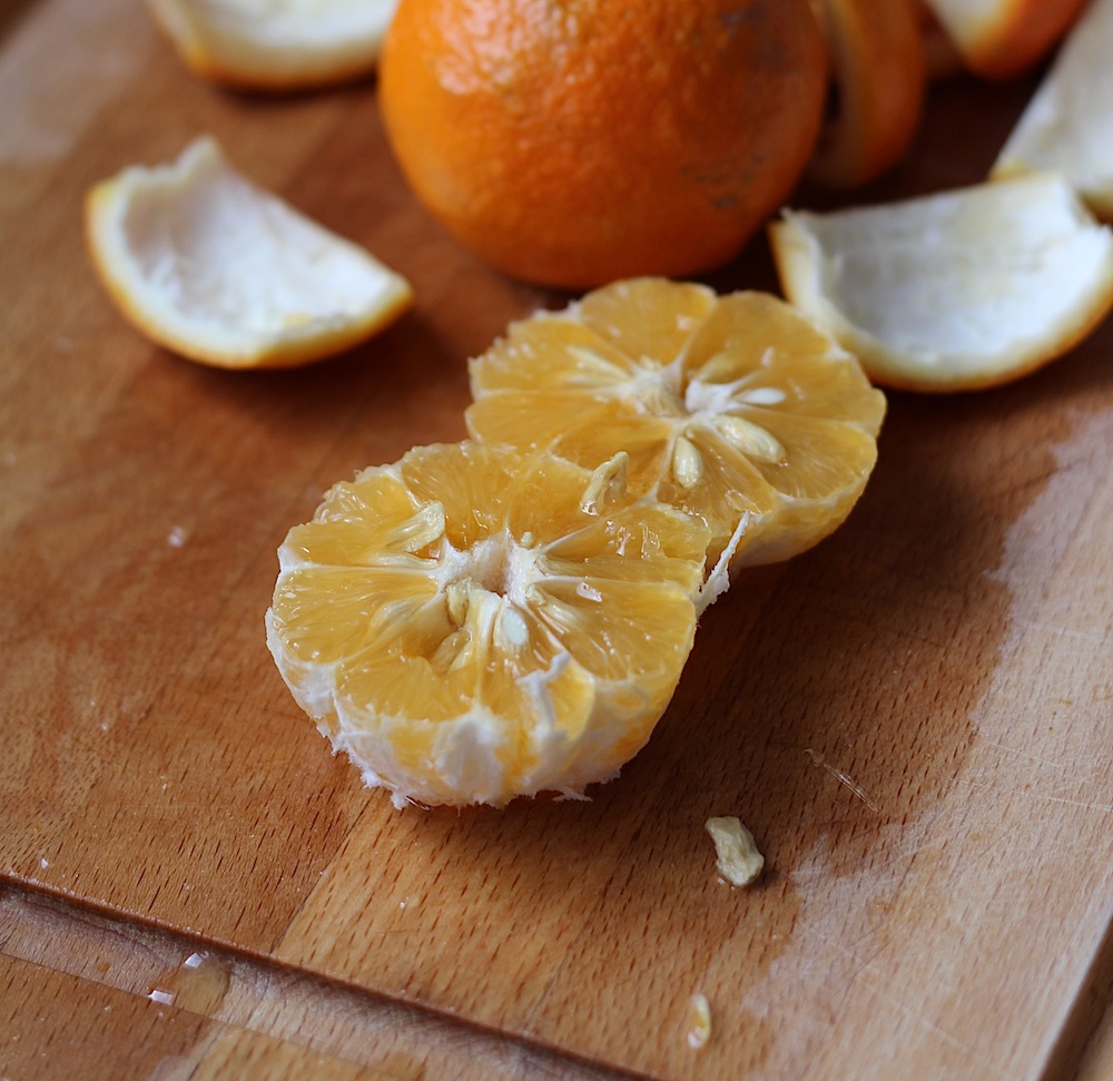 1. Lavez et brossez les oranges sous l’eau chaude. En principe elles ne sont pas traitées mais il vaut mieux éliminer toute saleté, tout résidu indésirable. Séchez-les.