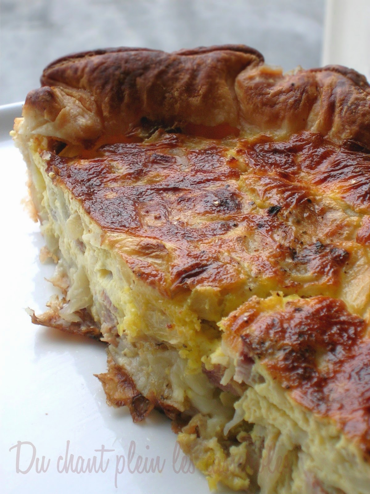 Tourte feuilletée aux oignons doux, cumin et jambon