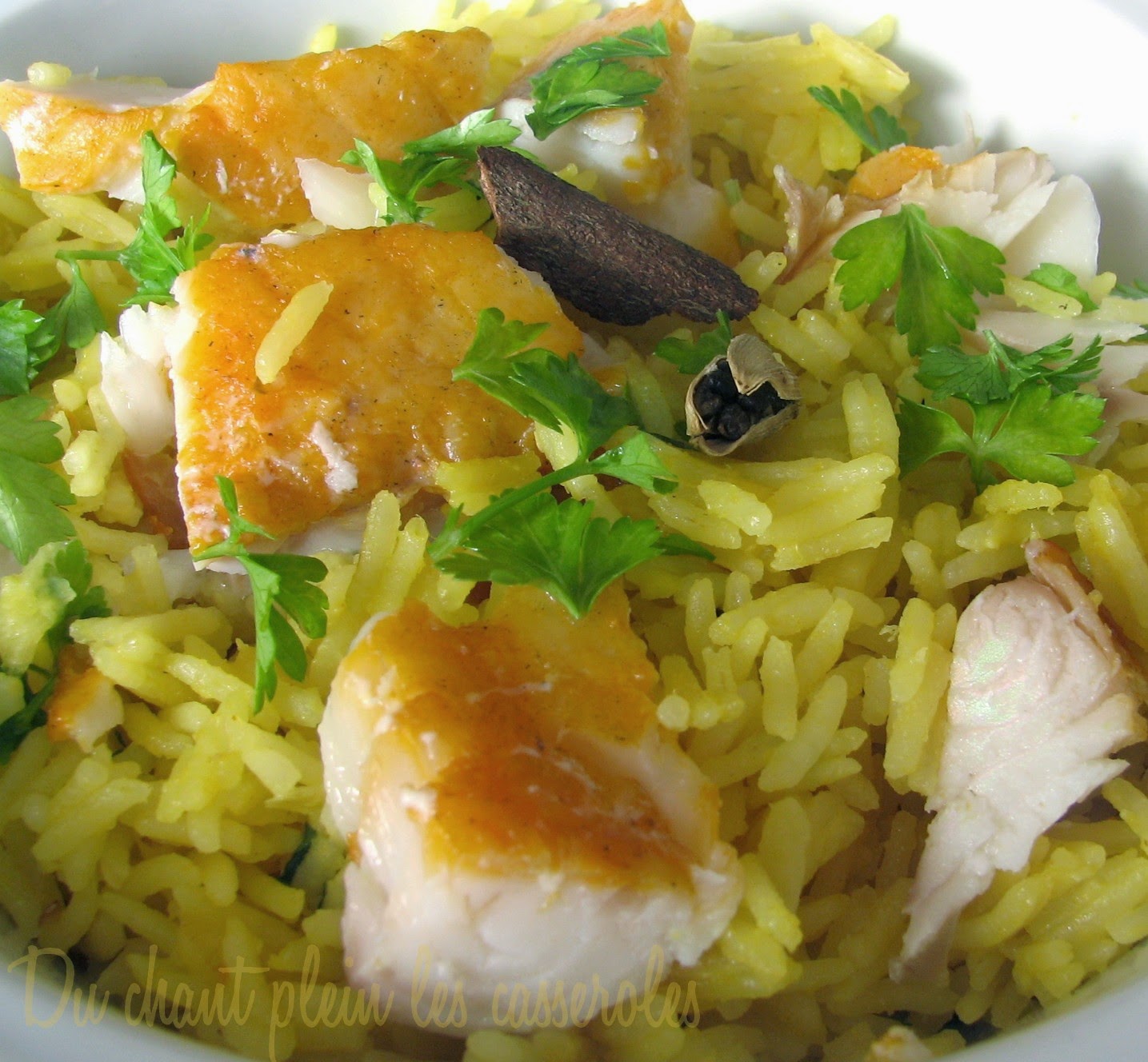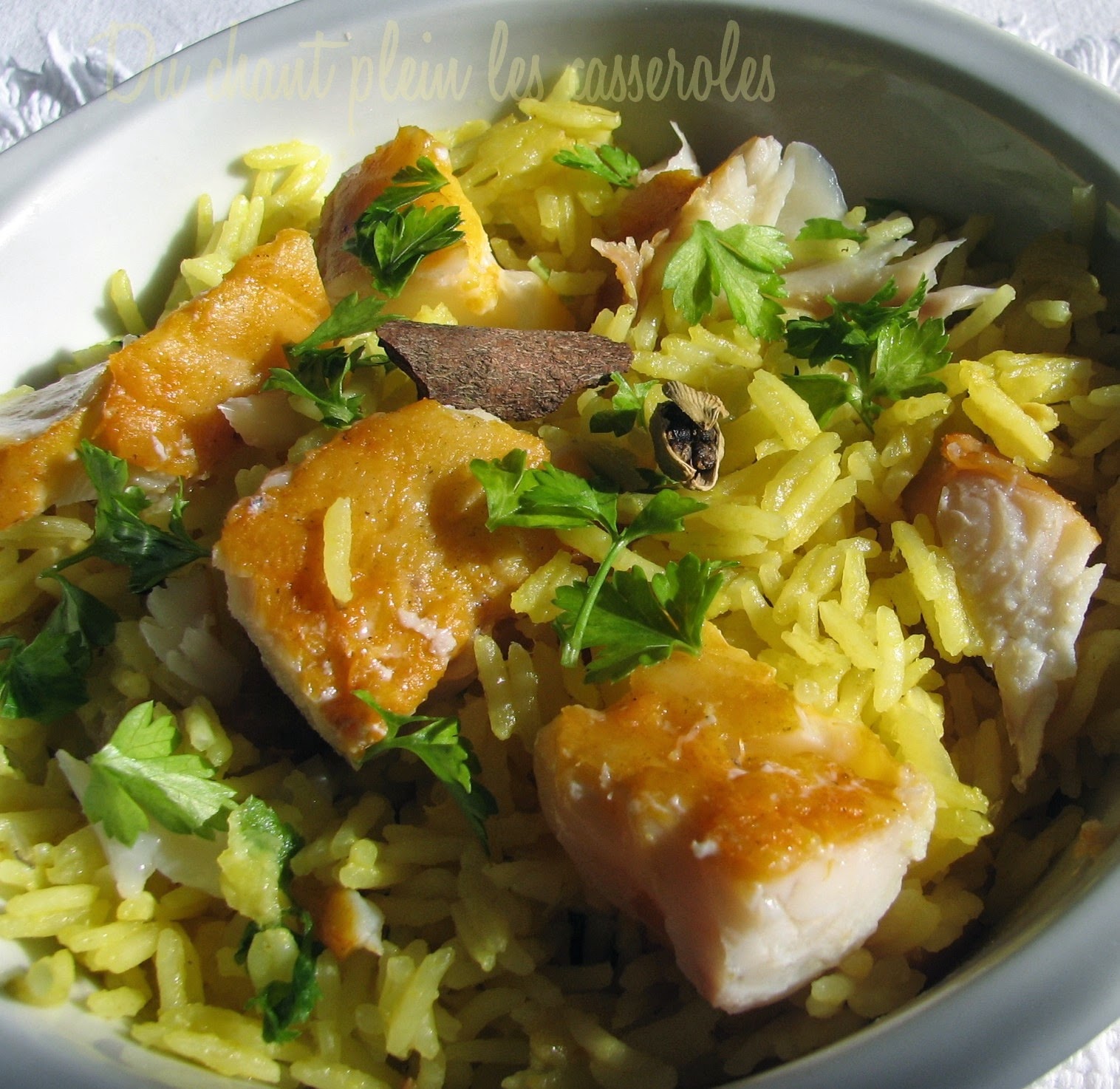 Il y a bien des façons d’interpréter ce plat, plus ou moins indiennes, plus ou moins occidentalisées. La recette que voici a été pêchée sur le blog Chez Becky et Liz, c’est en fait celle de Rick Stein, un chef anglais qui tient plusieurs restaurants en Cornouaille et qui est un spécialiste des produits de la mer. J’ai préféré cette version à celles signées Jamie Oliver (plus indienne, avec du piment et de la coriandre) ou Delia Smith (avec beaucoup de beurre…), ou encore James Martin (avec de la crème).