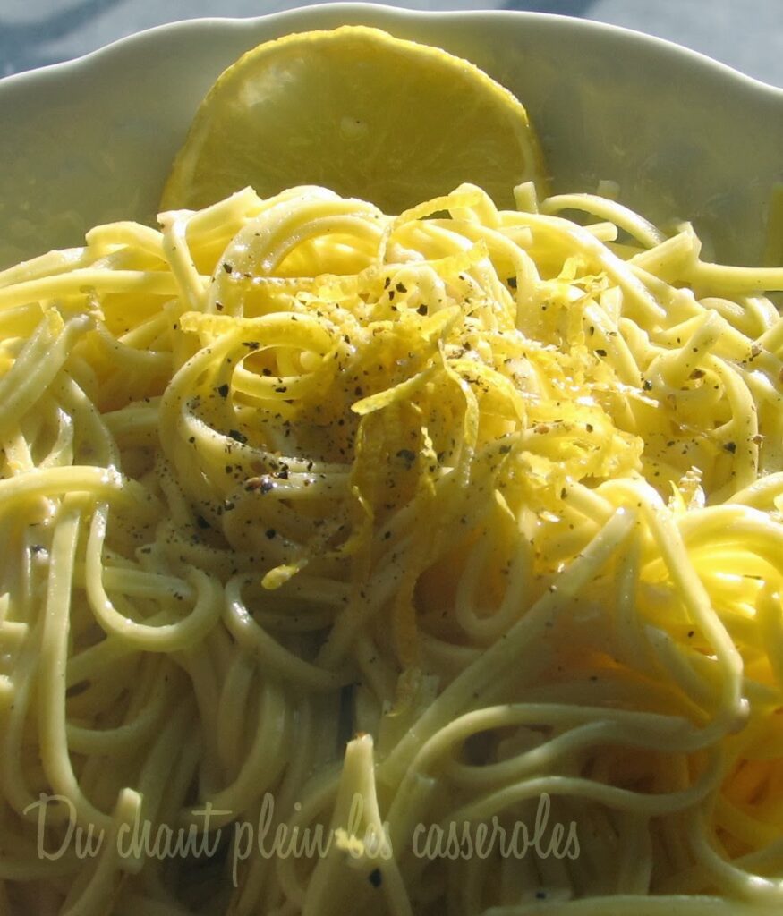 Avec les citrons de Menton, un plat tout simple, délicieux, pour entrer dans la saison nouvelle : des pâtes au citron (hé hé, vous croyiez que j’allais ENCORE vous proposer une marmelade ? Ce sera pour bientôt, rassurez-vous…)