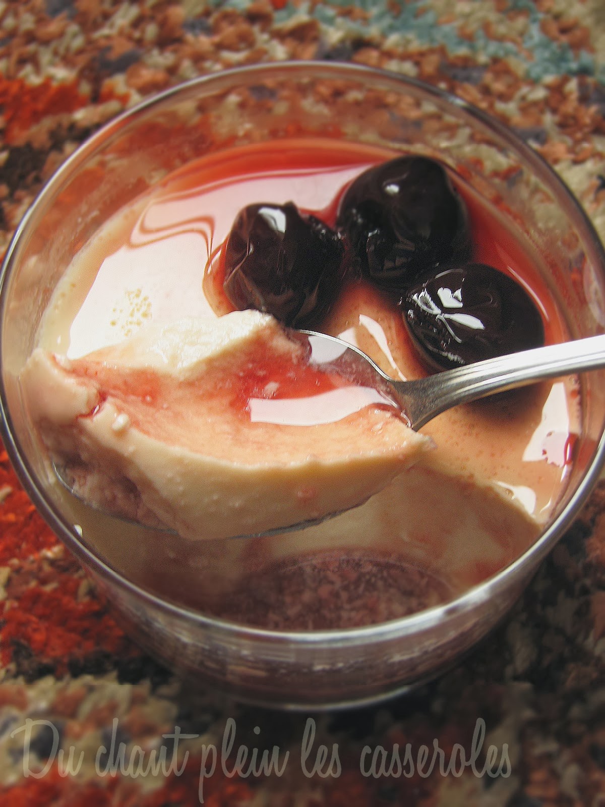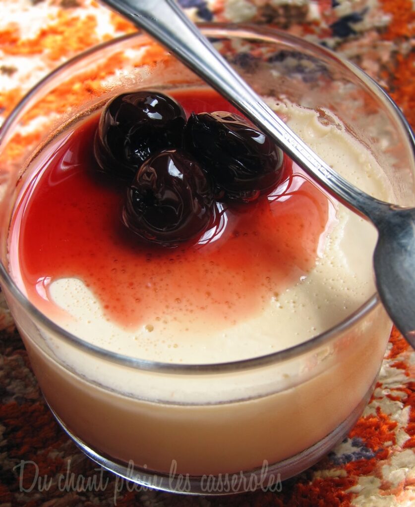 3. Mettez au frais au moins 4 heures. Au moment du service, démoulez (ou non), puis nappez chaque panna cotta de cerises amarena avec leur sirop.