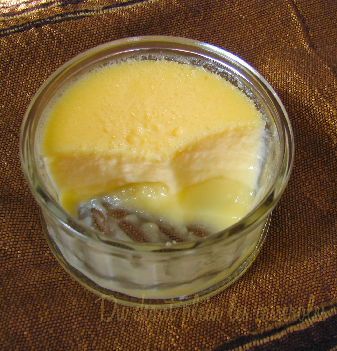 Le plus souvent (mais pas toujours, ça doit être une question de densité respective de la crème et du mélange œufs-citron, si un fort en chimie passe par là, qu’il m’explique, ça m’intrigue) ce dessert se sépare en deux phases à la cuisson. Une couche inférieure presque tranlucide au goût très citronné, une couche supérieure jaune pâle, densément crémeuse.