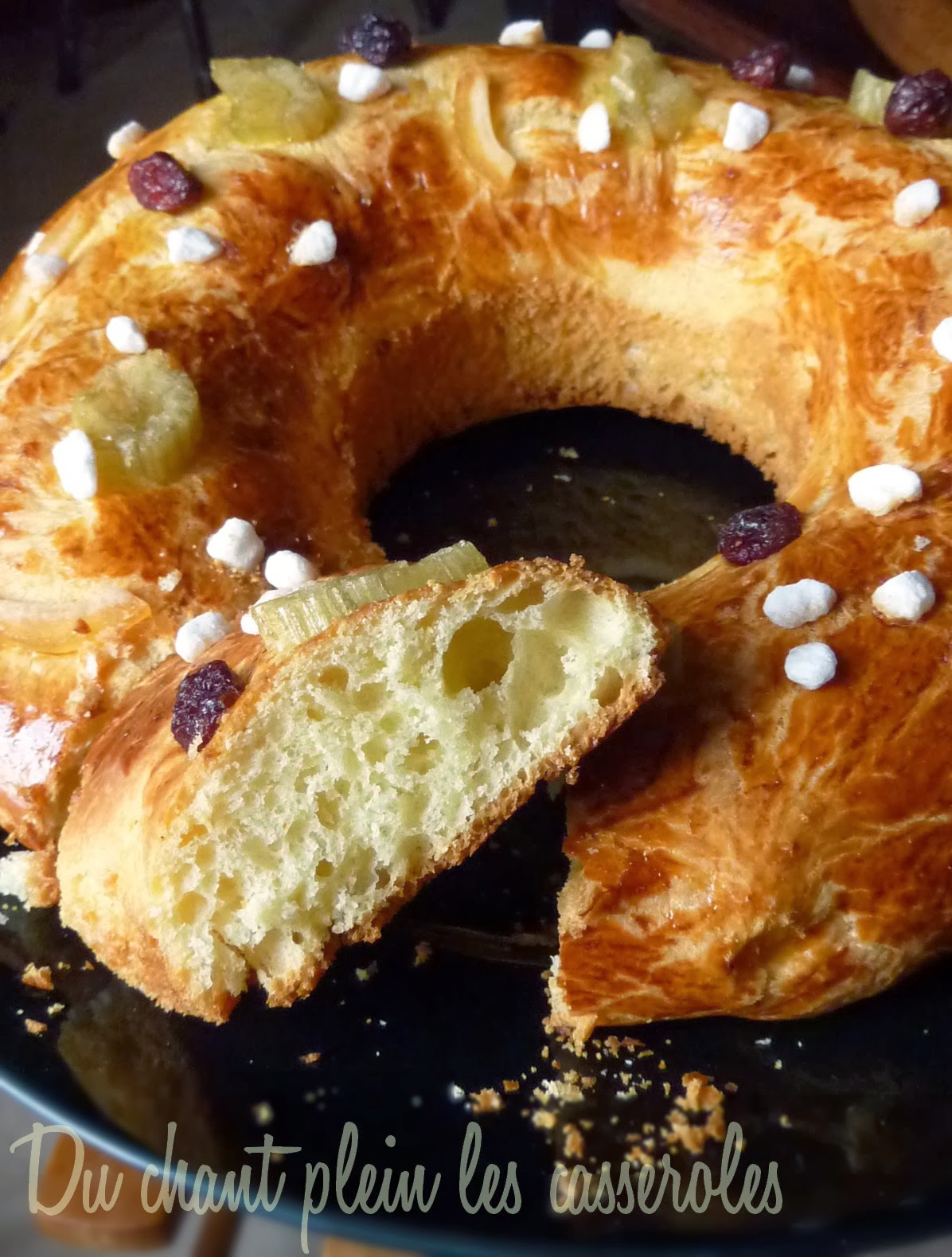 Cette brioche est une fausse couronne de l’Épiphanie, je vous préviens d’emblée. Ce n’est pas la recette traditionnellement préparée dans le sud de la France, assez dense et parfumée à la fleur d’oranger. Non, c’est une « banale » brioche au bon goût de beurre, à la mie bien aérée et incomparablement moelleuse. La recette est issue du livre d’Eric Kayser, 100% pain. Je l’ai simplement façonnée en forme de couronne et agrémentée de quelques confiseries sur le dessus pour faire « comme si ».