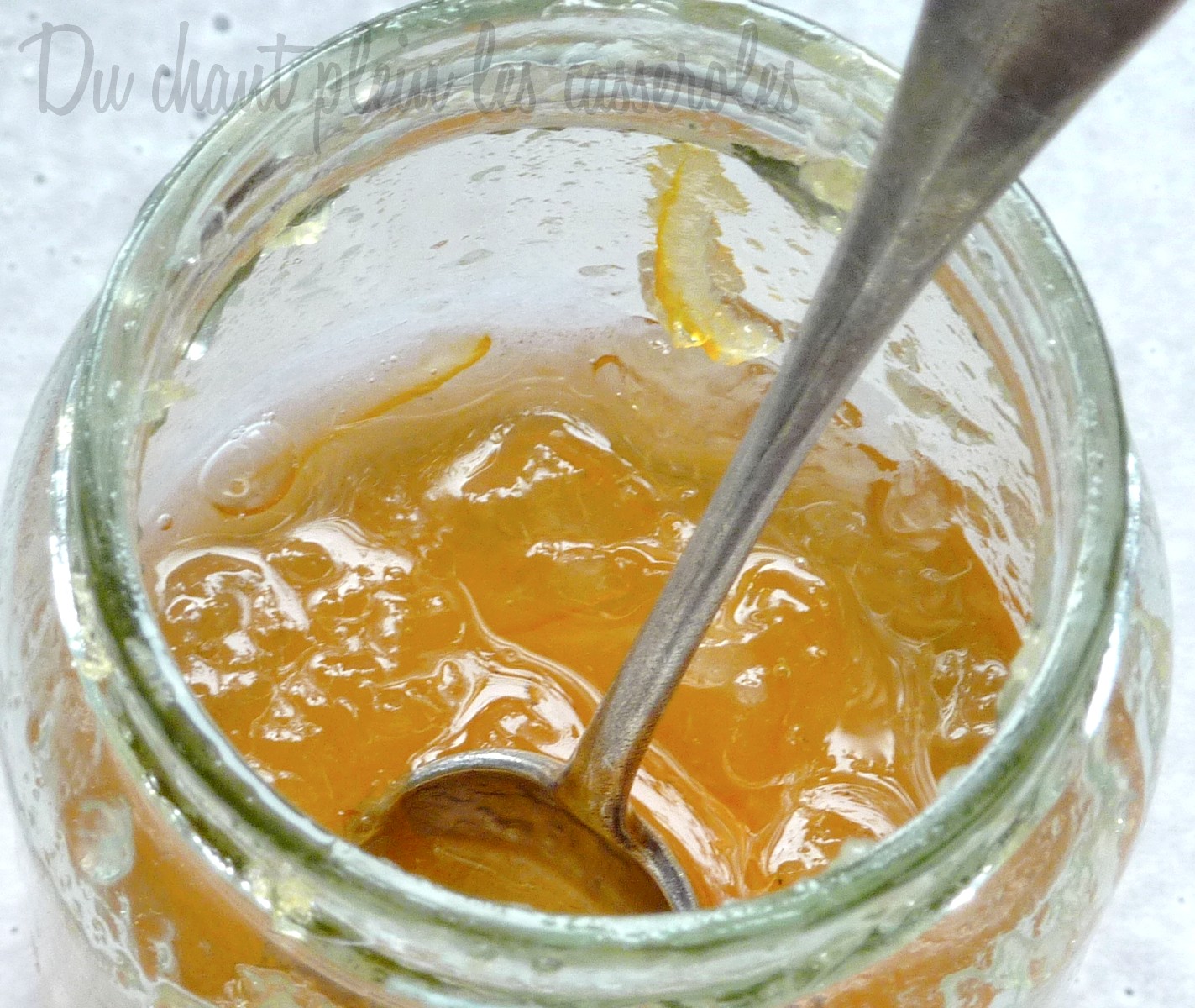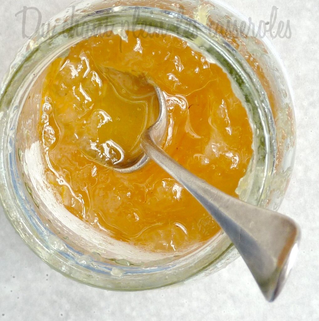 4. Ajoutez les écorces blanchies au jus additionné de sucre. Faites cuire votre gelée à feu vif en remuant souvent et en surveillant bien la gélification. Dès qu’une goutte de gelée posée sur une assiette froide se fige et plisse si on incline l’assiette, la gelée est suffisamment prise. Mettez en pot, retournez les pots pour stériliser les couvercles, retournez à nouveau et laissez refroidir.