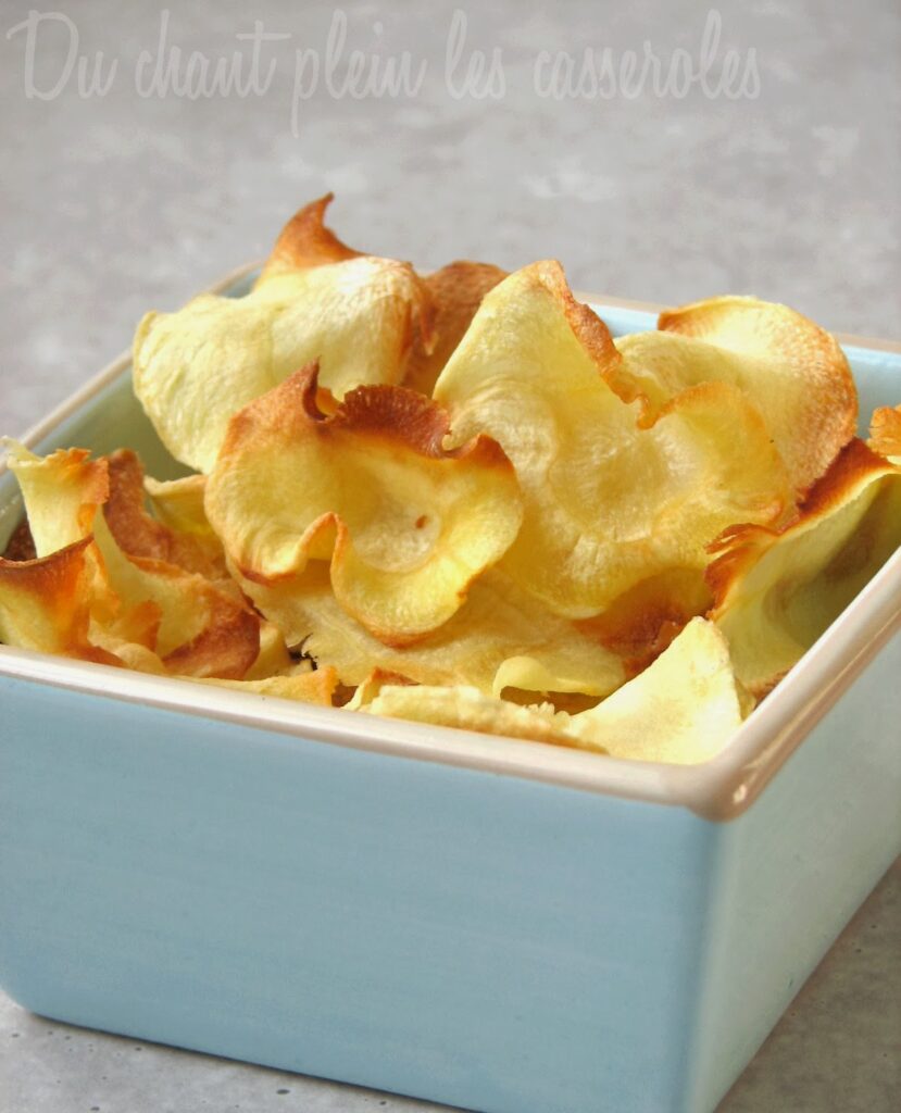 2. 120° C pendant 1h au moins, de façon à les faire sécher, pour un résultat croquant (un peu comme des pommes séchées). A savourer froid à l’apéritif, cela change agréablement des chips et c’est moins lipidique.