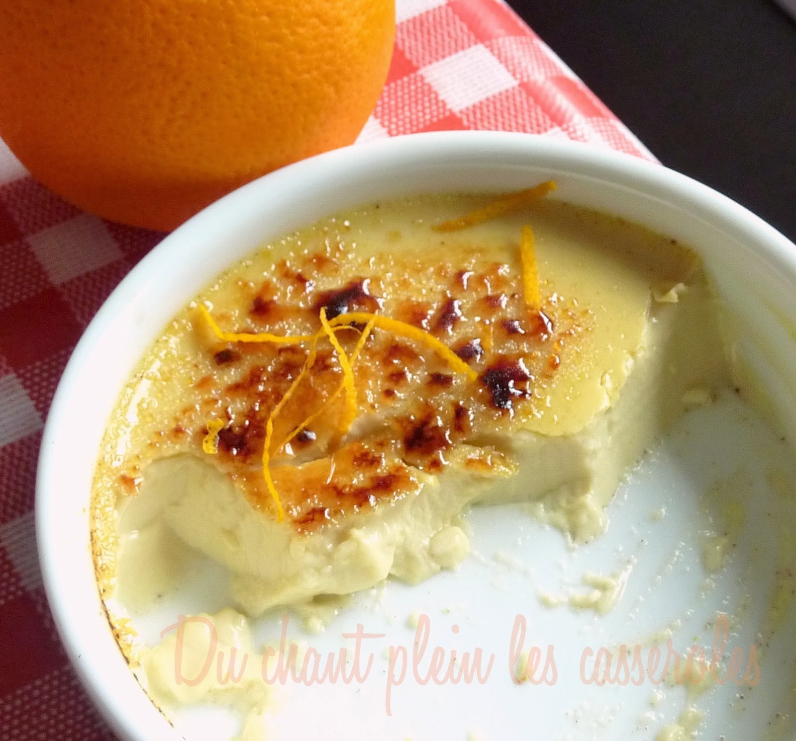 4. Laissez refroidir à température ambiante, puis glissez au frais. Au moment du service, répartissez le reste de sucre sur les crèmes et brûlez-les au chalumeau de cuisine. Décorez de zeste d’orange si vous le souhaitez.