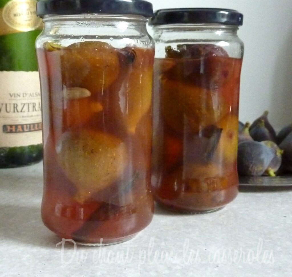 Les figues, ici on les aime nature, à peine cueillies sur l’arbre. Malgré tout, on ne peut pas en manger une douzaine à chaque repas pendant 3 semaines. Il faut bien se résoudre à les cuisiner un peu pour en profiter… plus tard. Figues et Gewurtztraminer. L’idée vient d’un magazine culinaire. Ce sont de vraies petites friandises, parfaites pour garnir un blanc-manger, une petite crème, surtout si elle est au chocolat ; délicieuses également avec …